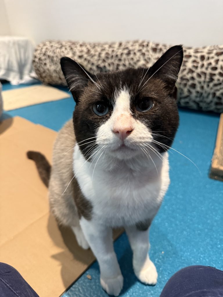 I'm quite the distinguished gentleman, I have lived a colorful life with plenty of ups and downs, but I've come out on the other side a wise old man who is looking for his super special person to live his days out with. I have been in care for quite some time and honestly to start with I did not like people, AT ALL, I would hide all day every day, this lasted for months until one day, I decided I wanted to say hello, and from these I have become a social boy who can be awfully cute and affectionate. I'm looking for a human advanced in feline knowledge, a superhuman who can take me under their wing and provide everything I need. I will take time to feel comfortable again in a new environment, I would prefer my own room I can hide in until I feel safe around you. While I won't be quick to settle in, I promise it will be worth it when you see how brave and lovely I can be. If you're an extraordinary cat person who is willing to open their home and heart to a phenomenal cat, give the staff a call to book a date!