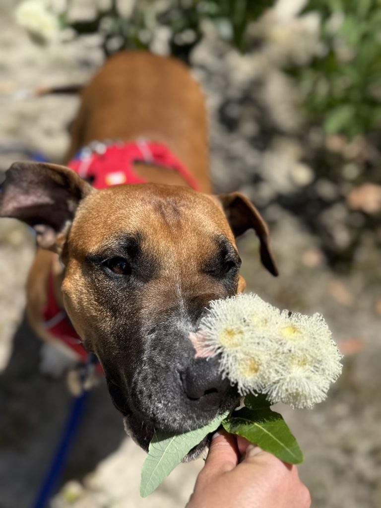 Let me tell you a bit about myself. My breed? Bull Terrier x, with what? Couldn't tell ya. You will have to meet me and take a guess! I am only a young girl still, and my pre – poo zoomies go to show it, I'll need a backyard to run around. And guess what, I am even toilet trained, winnerrr. Nooww what else? Oh yeah! I love to go on long walks, maybe not by the beach, gimme shrubbery, trees and poles to sniff, oh my! You see this mighty big nose? It is ready to sniff and explore my new neighborhood. Also, you may not be able to tell, but I am a big foody. I will sniff out every piece of dropped food, how good is that, your own hoover to keep the floors clean. And there is another plus, it makes it really easy to train me! If you wave a bit of food around, you have my focus and we can learn some cool training tricks together!