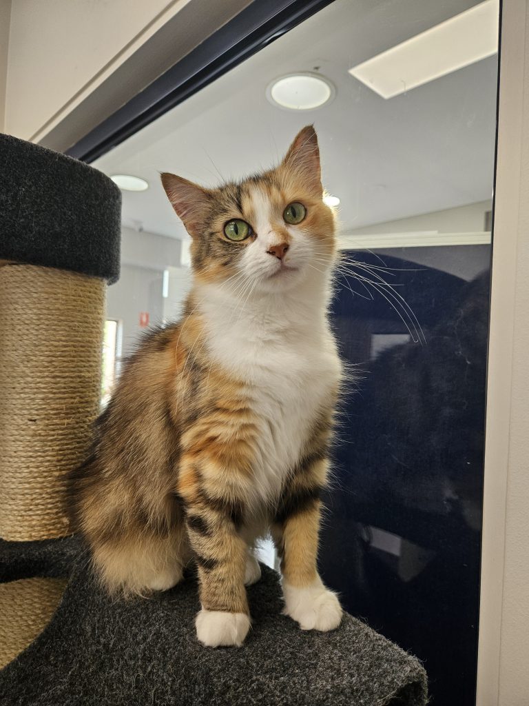 I can be a shy girl to begin with, so will need my own room when I first go home so that I can spend the time getting used to the sounds and smells of your home. For this I will need a litter tray, a comfy bed to call my own, a scratching post/matt and some toys. This is an added bonus as you can spend time with me so that we can get used to each other. I need to go to a quiet home and with children over 12, as I dont like loud noises and being picked up. I do have a best friend called Kitty, who I need to go home with as we are a bonded pair. having double the love is an amazing thing as you will get two best friends out of us. Once I get to know you, I can give you lots of love and head bunts, as I do love to have a chat and to get some extra love. If you can give us both a loving home and have the time and patience, please ask a staff member to meet us today,