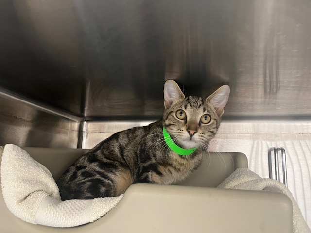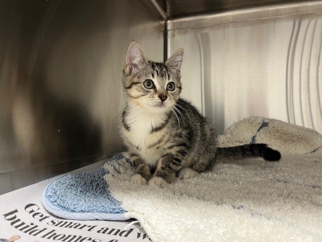 Hi, I'm Shayba. I’m a male Domestic Short Hair kitten, about 5 months old. My energy level is average, so I enjoy a good play session as well as cozy cuddle time. I love exploring new corners, chasing feather wands, and curling up in a sunny lap. I’m curious, friendly, and I adapt well to a loving home. Best with Children Aged: No known child related issues. I’m litter trained and ready to join a forever family. If you’re looking for a playful, affectionate companion who will grow with you, I’m your guy. Please consider adopting me and starting our adventures together.