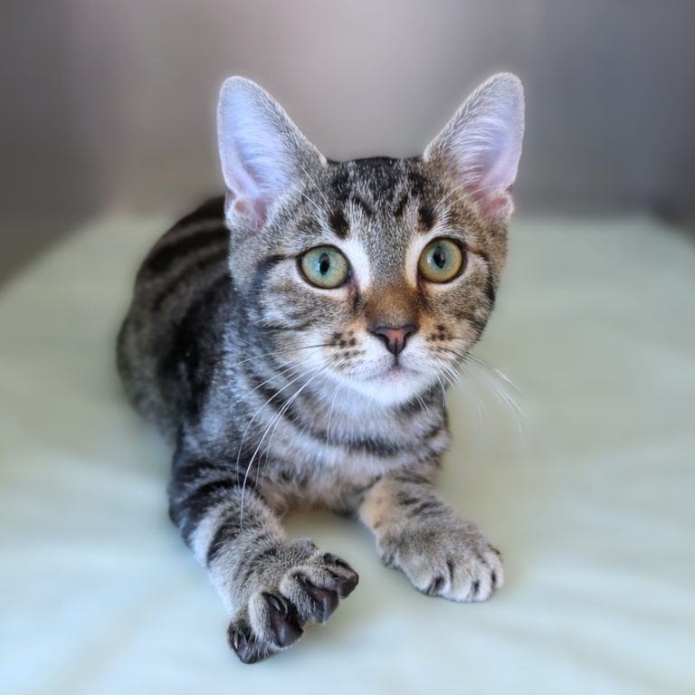 Hi, I'm Eden, a male Domestic Short Hair kitten. I'm 3 months old, full of curiosity and gentle energy. I love exploring, soft toys, and snuggling into a warm lap after a nap. I have a silky coat, a sweet purr, and a calm curiosity about the world. I'm healthy, litter-trained, and eager to learn the rhythms of home life. I have no known child-related issues, so I could be a good match for a patient family with kids or adults who enjoy a gentle playmate. I thrive on daily play, routine, and plenty of cozy cuddle sessions. If you're looking for a cuddly, curious companion who will grow with you, I’d love to meet you. Come say hi, and let’s start our adventure together!