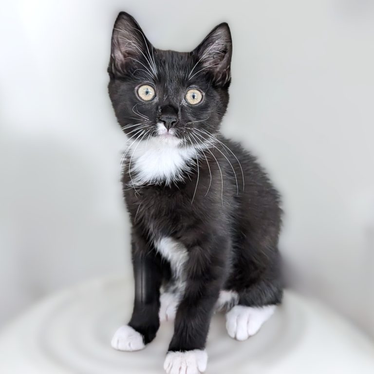 Hi, I’m Hiccup. I’m a male Domestic Short Hair kitten with an average-energy personality. At 2 Months old, I’m curious, playful, and I love curling up for a cuddle after a little exploration. I’m still small, but I’m learning to trust new people and I adore gentle pats and quiet spot naps. I have no known child-related issues, so I could be a good match for families who will guide me with patience. I’d thrive in a calm, loving home where I can grow into a loyal companion. A cozy bed, some safe spots to climb, and a sunny window would make me very happy. If you want a sweet, affectionate buddy who will brighten your days as I grow, I’m your guy. Let’s meet and see if we’re a purr-fect fit. — Hiccup