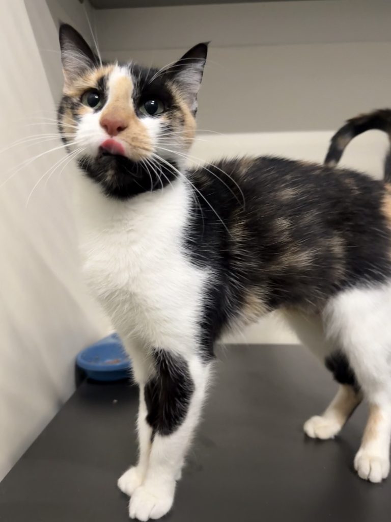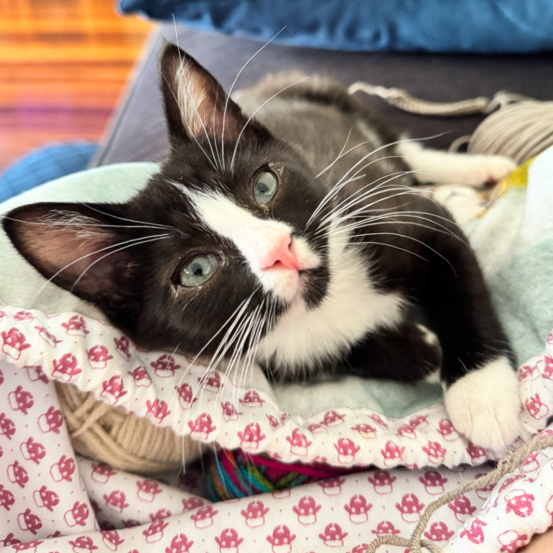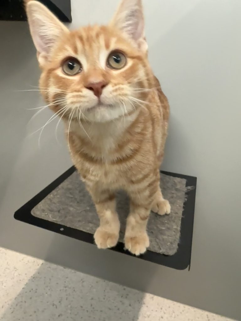 Hi, I’m Kim, a female Domestic Short Hair kitten with an easygoing, average-energy personality. I’m 3 months old. I’m curious, playful, and love a warm lap for naps. I’m friendly with new people, and I have no known child-related issues, so I’m likely to be great with patient kids who understand gentle handling. I’m a tidy eater, litter trained, and I adore cuddle time after a little zoomy play. I get along well with other calm cats and would enjoy a home with steady routines and a cozy sunbeam to nap in. My ideal home would be one where I get daily gentle play, soft blankets, and a calm, loving caregiver who appreciates my kitten charm but also gives me space to nap. If you’re looking for a sweet, affectionate feline to grow with, I’m ready for adoption. Please bring a friendly energy and let’s start our adventure together. Best with children: No known child-related issues. Energy level: Average.