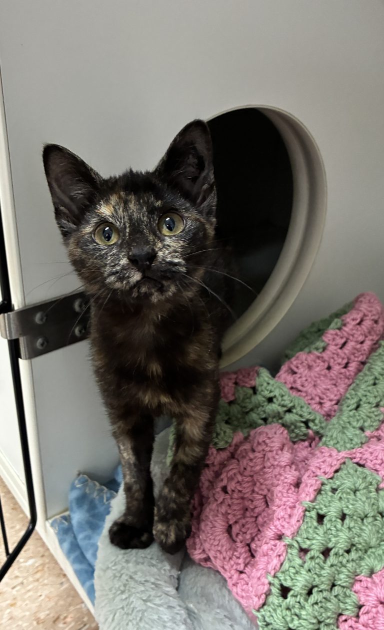 Squint is a delightful little kitten who lives life with curiosity and charm. This friendly girl is always the first to approach, curious to investigate what you’re up to. She loves being around people and has a natural confidence that makes her settle into new environments with ease. Her playful energy is balanced by a sweet, affectionate side.