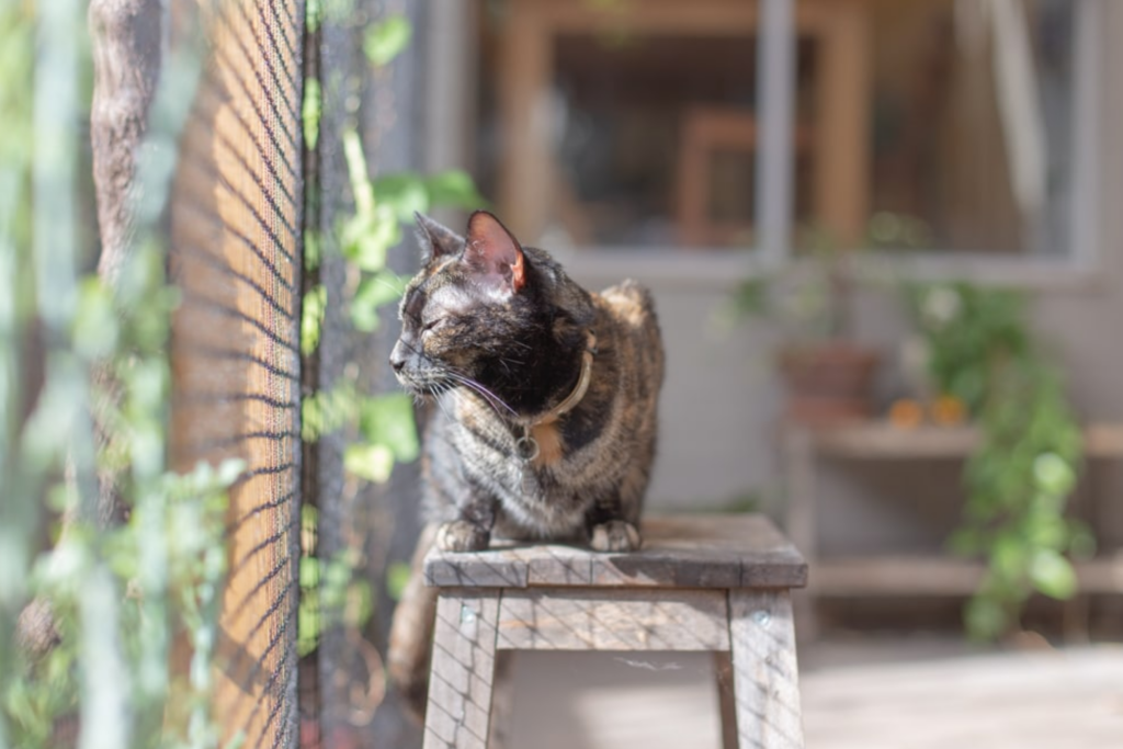 Providing a secure outdoor enclosure is another great way of keeping your cat happy and safe at home. An enclosure (e.g., a catio) can be attached to your cat’s indoor space (e.g., via a window or cat flap) allowing them to choose where they spend their time. If you have a balcony or veranda which can be made escape-proof, this is a great option. Alternatively, if you have the space, you could build a free-standing enclosure (e.g., cat condo).