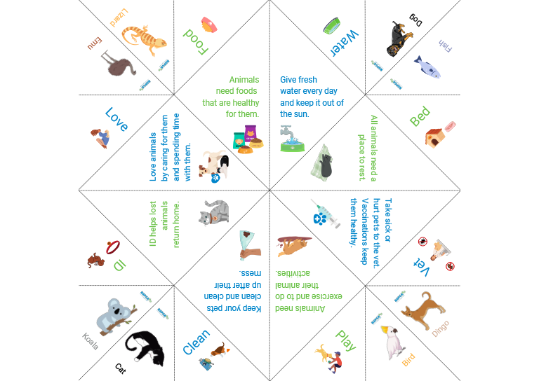 Our learning materials are designed to give kids the knowledge, skills, and awareness to improve their animals’ lives, from pets like rabbits, cats, and dogs to adorable farm or wildlife animals.Â