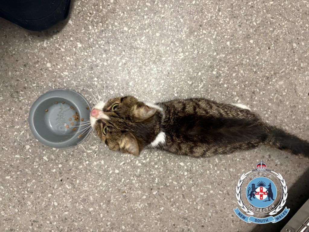 The cat was in emaciated body condition, with its hip bones protruding and clearly visible. As a result, it was seized and taken to a local veterinarian for urgent treatment before being transferred to the RSPCA NSW Sydney Veterinary Hospital in Yagoona.