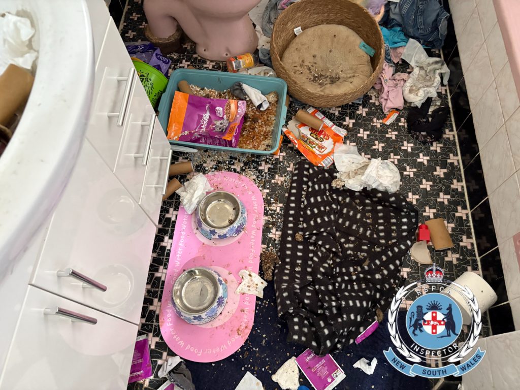 After two consecutive days trying to raise someone at the address and hearing a cat meowing from inside, a search warrant was applied for and granted at the NSW Local Court. The warrant was executed by RSPCA NSW Inspectors to gain access to the property where they found a cat named ‘Princess’ confined in a bathroom with unopened packets of wet cat food placed outside the door. There was no food or water inside the bathroom, and an overflowing litter tray was covered by an empty cat food bag.